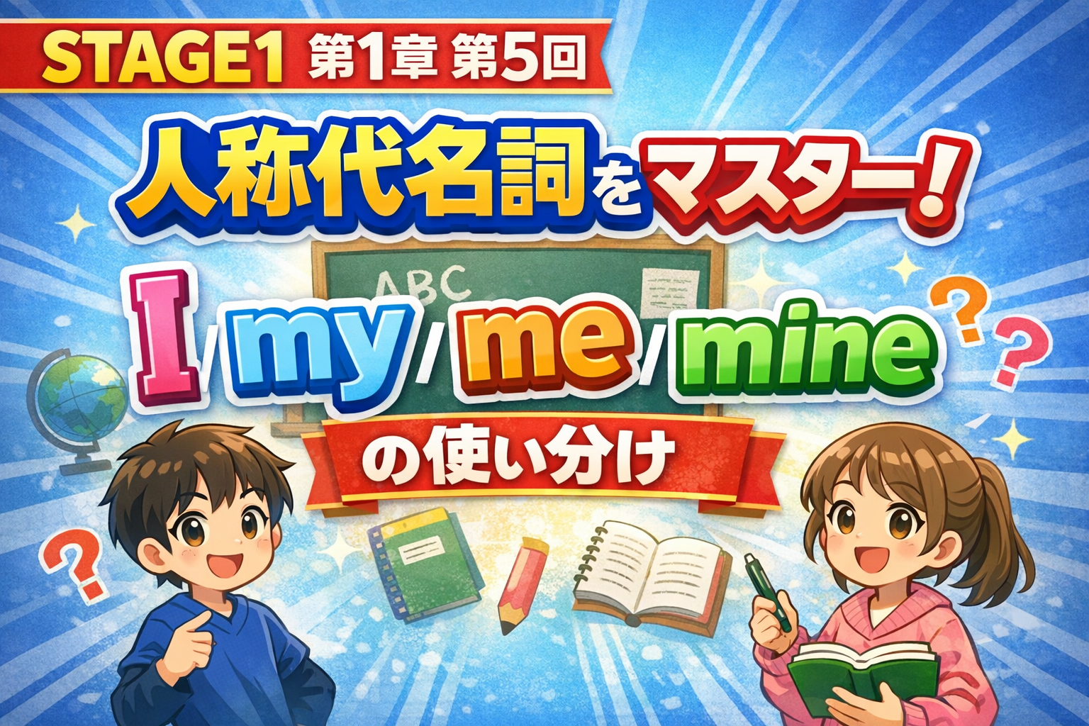 今日は「人称代名詞」!I・my・me・mine の使い分けって難しそうに見えるけど、ルールを知れば一発で分かるよ。表を見ながら一緒に整理しよう!