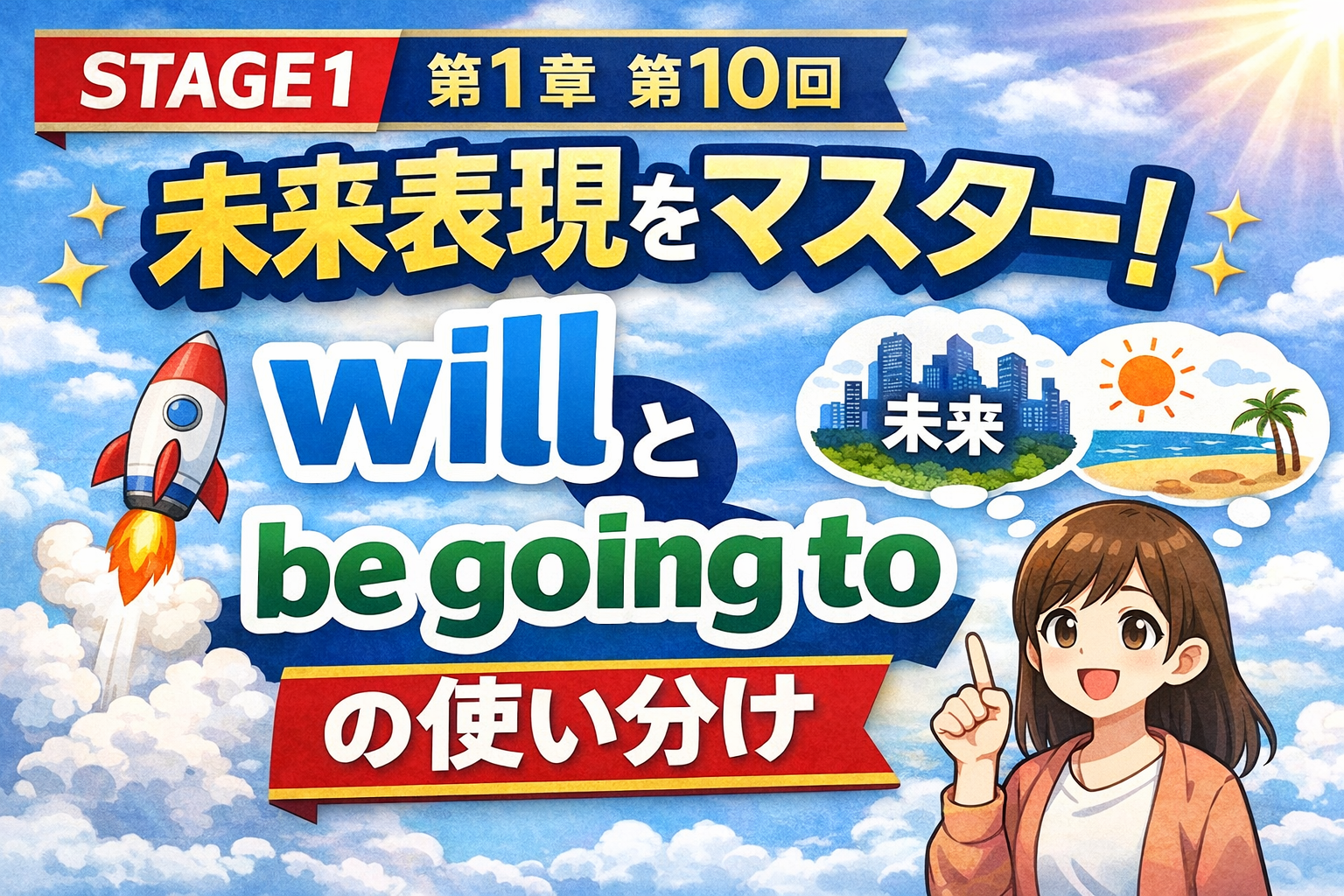 前回は 過去進行形(was / were + ing形) を学んだね!過去のある瞬間に「まさに〜していた」を表す言い方をマスターしたね。今回はいよいよ 未来表現 に挑戦しよう!