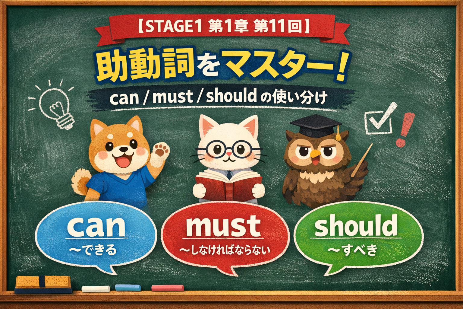 「〜できる」「〜しなければ」「〜すべき」って英語で言いたいとき、まず浮かぶのが can / must / should だよね!これらの助動詞をマスターすると会話の幅がぐっと広がるよ!